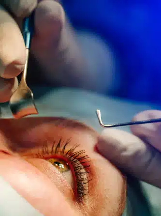 Les anomalies des paupières (comme le ptosis, l’ectropion ou l’entropion) ainsi que les obstructions lacrymales nécessitent une prise en charge chirurgicale spécifique. Ces actes visent à restaurer le fonctionnement des annexes oculaires et à améliorer le confort visuel. La blépharoplastie, intervention à visée réparatrice ou esthétique, est également proposée selon les cas.