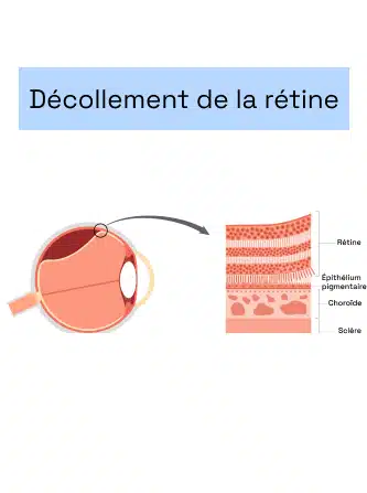 Un décollement rétinien interrompt le contact entre la rétine et son support. Cela entraîne une perte de vision rapide. L’intervention chirurgicale permet de repositionner la rétine.