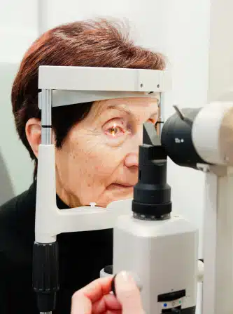 L’examen du cristallin à la lampe à fente permet ensuite de repérer les opacités responsables de la cataracte. Pour compléter le bilan, une dilatation pupillaire est réalisée afin de visualiser la rétine et exclure toute pathologie concomitante.