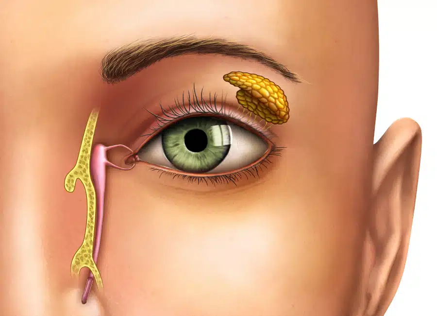 La sécheresse oculaire est une conséquence d’un dysfonctionnement des glandes lacrymales, réduisant la production ou la qualité des larmes. Ce déficit entraîne des irritations, une sensation de grain de sable, voire un larmoiement réflexe. Le traitement repose sur l’usage de larmes artificielles et, dans certains cas, sur des bouchons lacrymaux pour prolonger la présence des larmes.