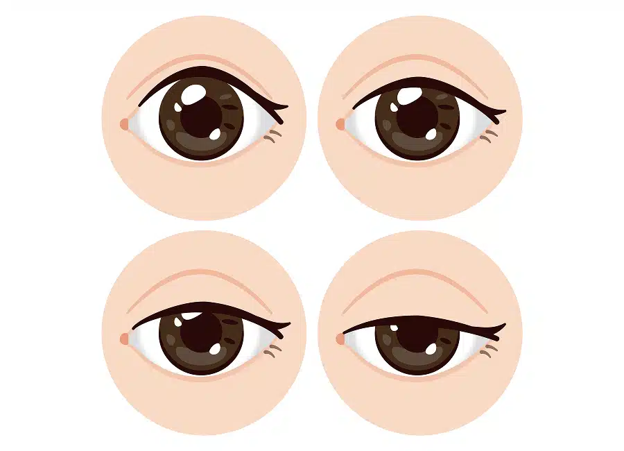 - Affaissement lié à l’âge : typique des ptosis aponévrotiques.